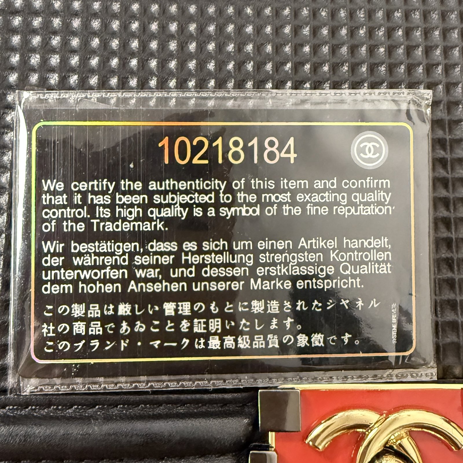 - Interlocking CC Logo, Quilted Pattern & Chain-Link Accent