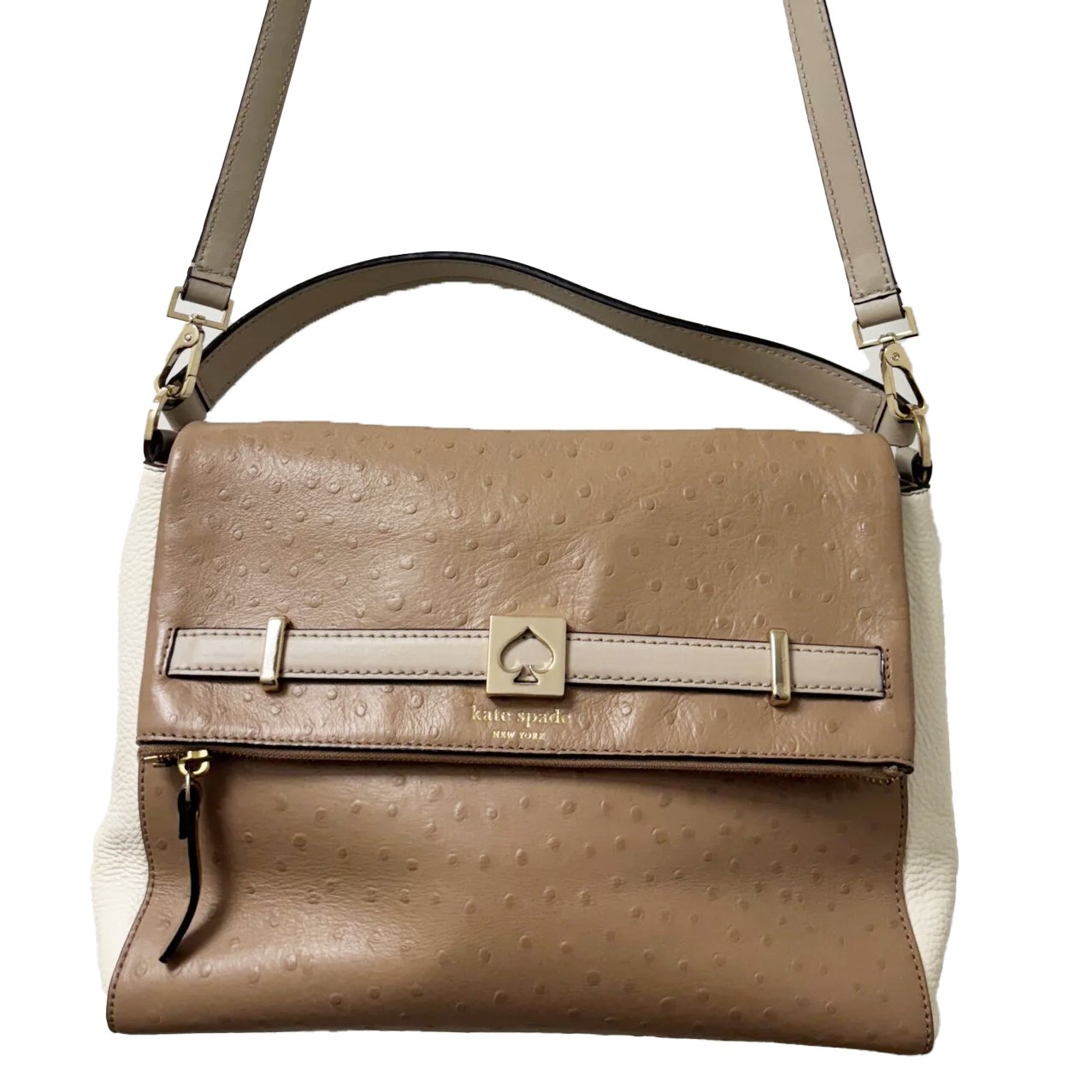 Kate Spade Houston Street Maria Tan ostrich and cream pebble leather Ex cond