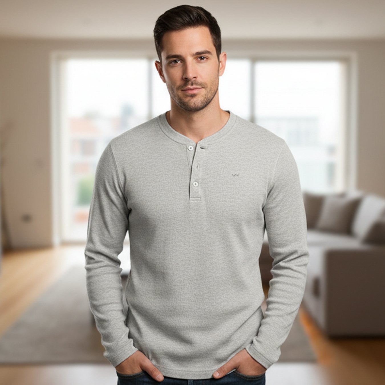 - Style: Henley shirt, long sleeve