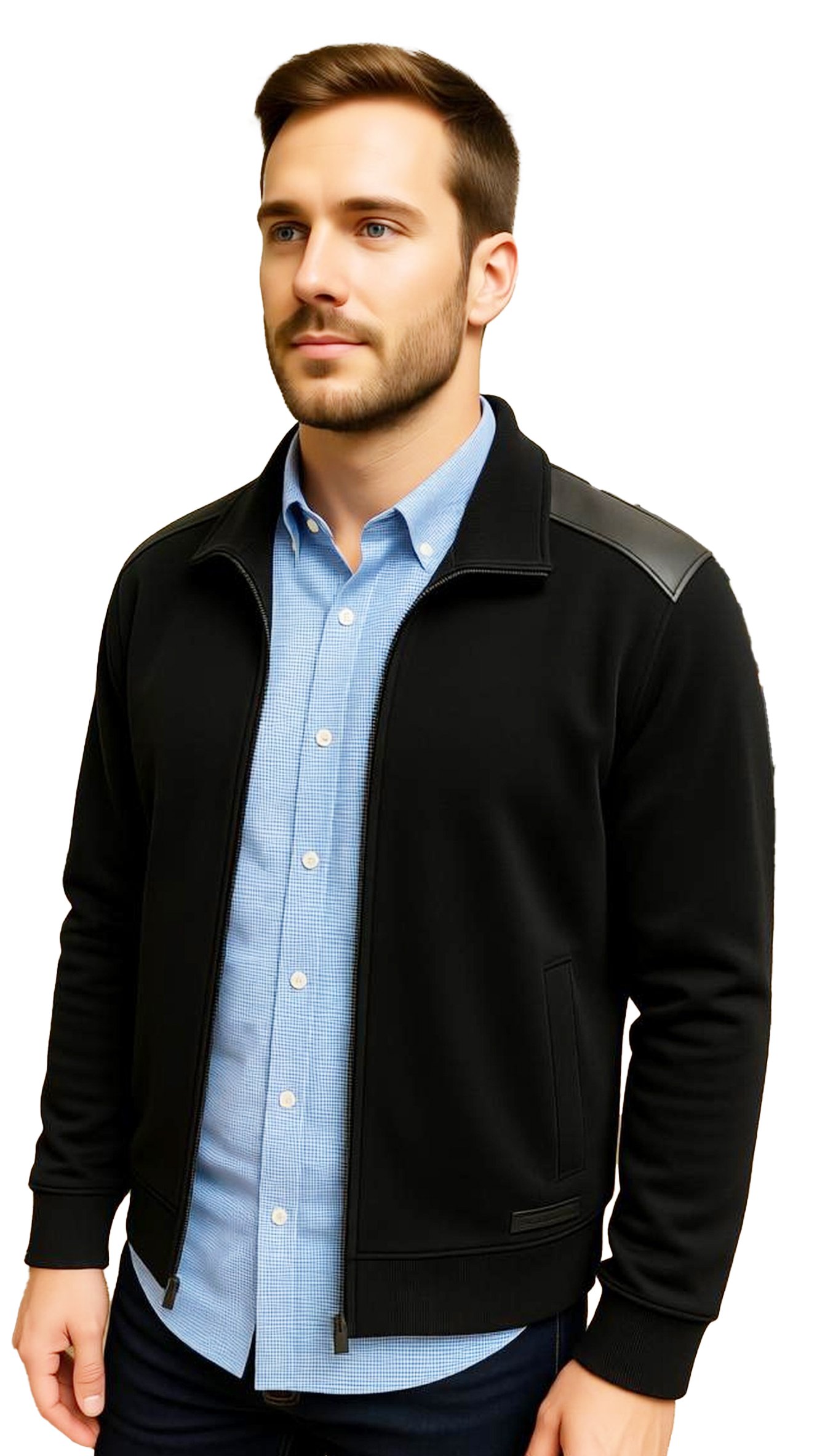 This Michael Kors men’s black full-zip jacket offers a sleek, modern look with a comfortable, long-sleeve design. Perfect for layering, it combines style and practicality for everyday wear