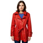 Michael Kors Women’s Red Trench Coat Size M Hooded Asymmetrical Zip Belted Rain Jacket