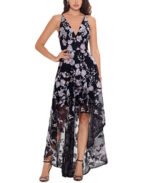 Xscape 3D Floral Embroidered V-neck Gown