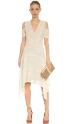 Features a sheer overlay and a nude lining, offering a refined, layered look ideal for formal or semiformal events.