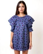 Be the first to review “Blue shift dress with ruffled sleeves and a bird print.” Cancel reply