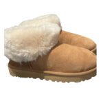 Step into cozy luxury with the UGG Nita Platform Slipper, designed for both style and all-day comfort. Featuring a premium suede upper and a soft wool-blend lining, these women’s slippers keep your feet warm and comfortable indoors or outdoors. The 1.5″ chunky platform sole with sawtooth EVA grip adds modern style while ensuring durability and traction. Perfect for lounging at home or running quick errands, these UGG women’s platform slippers combine fashion, function, and signature UGG comfort.